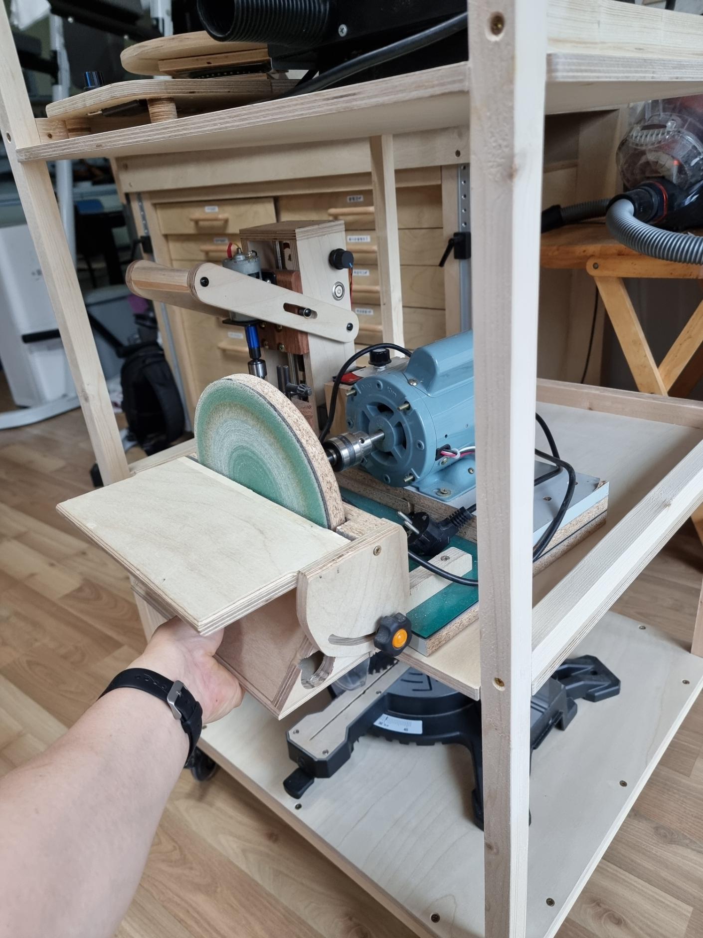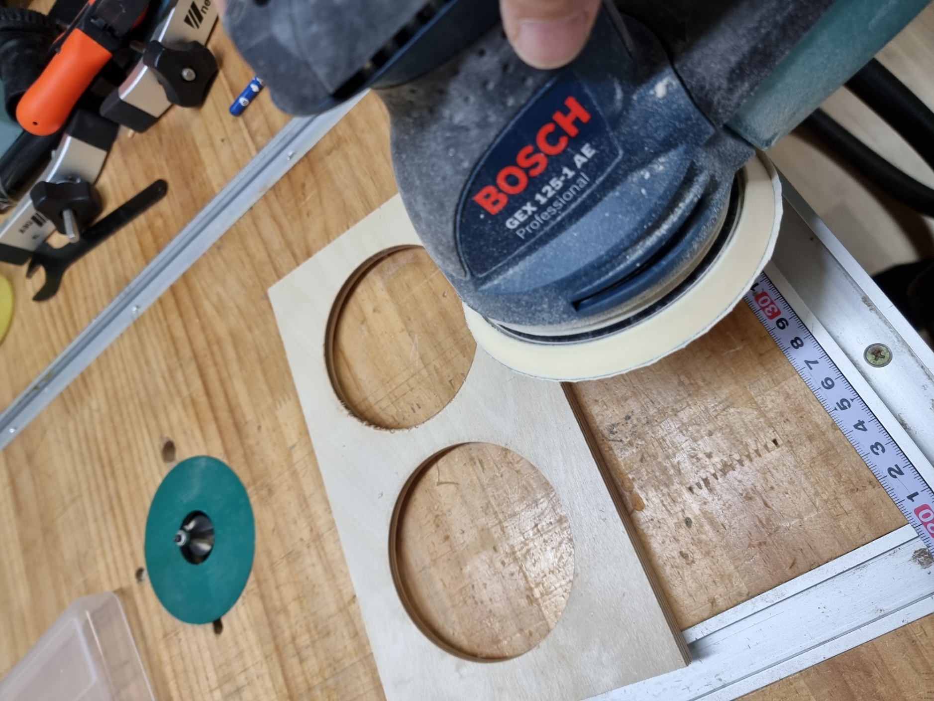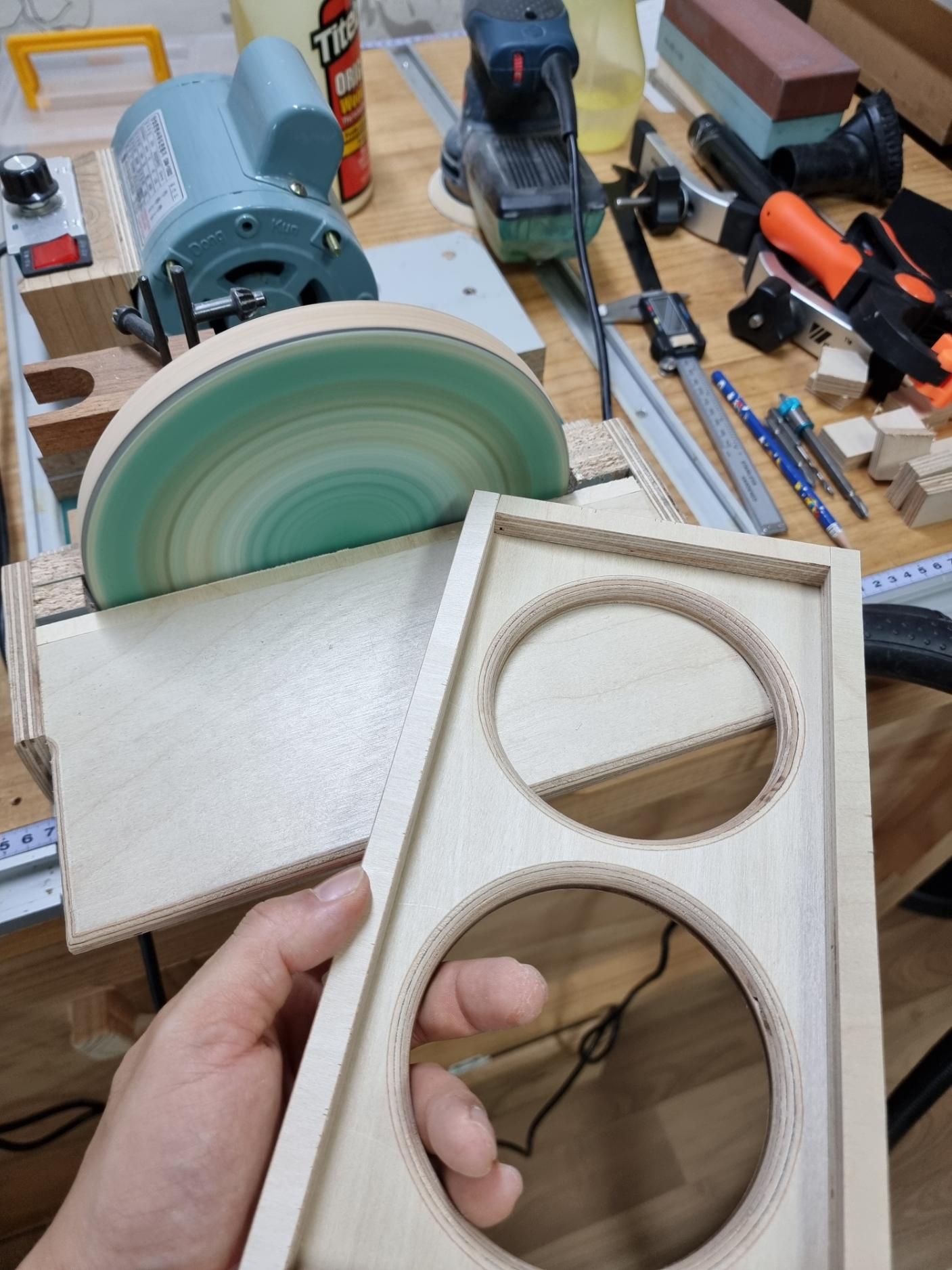 이제 모서리를 둥그스럽게 갈아주기 위해 디스크샌더기를 꺼내봅니다.