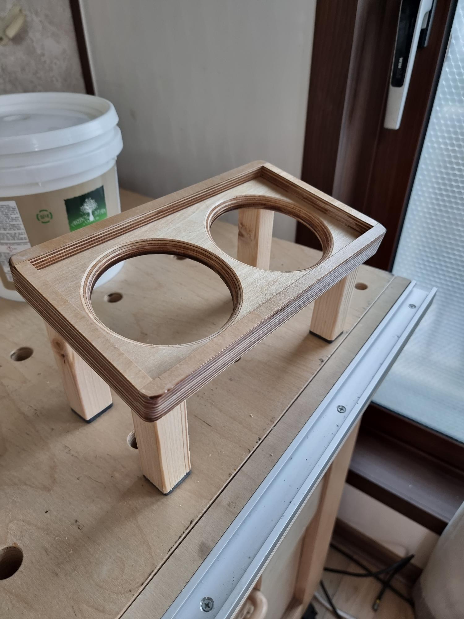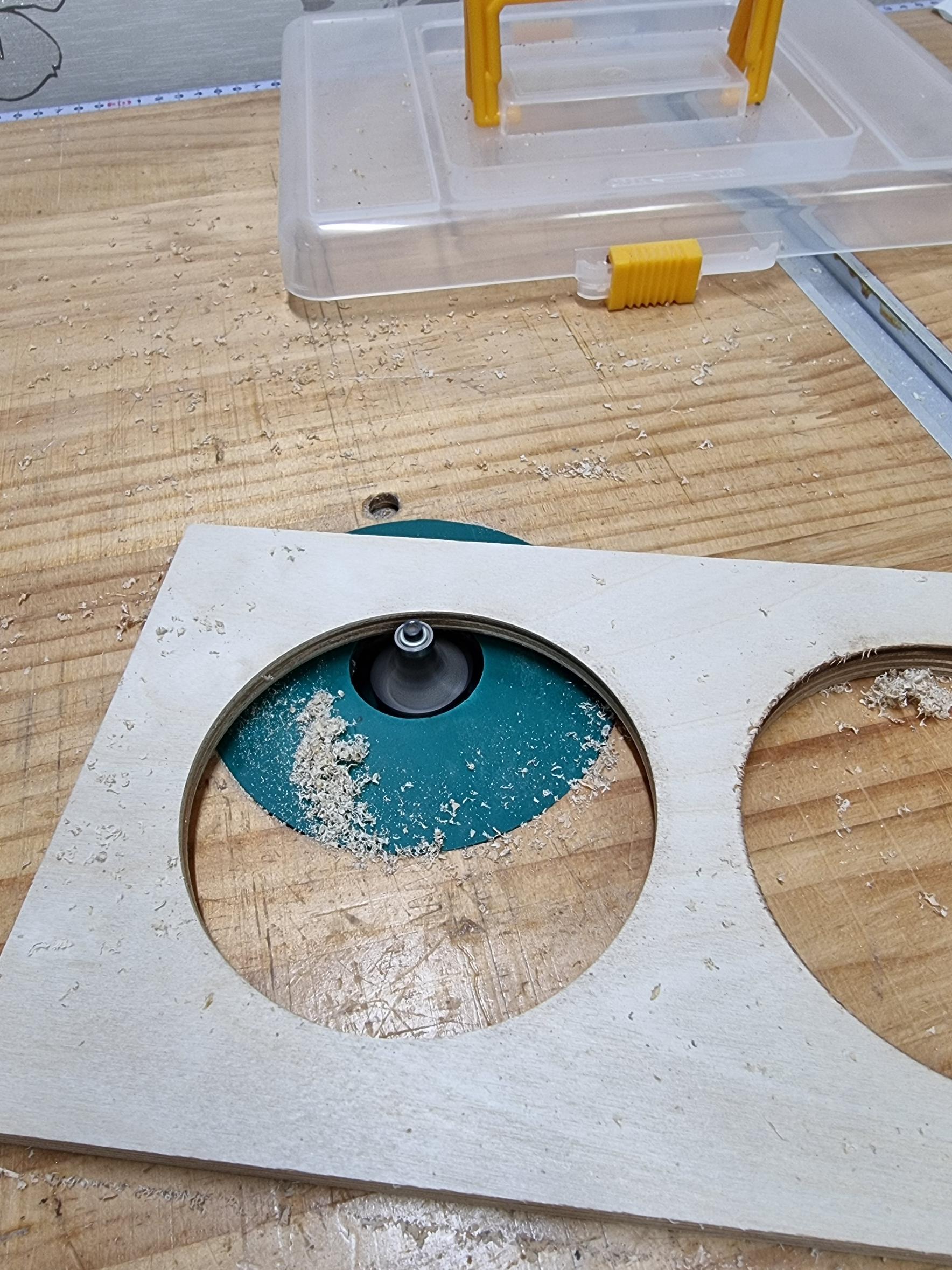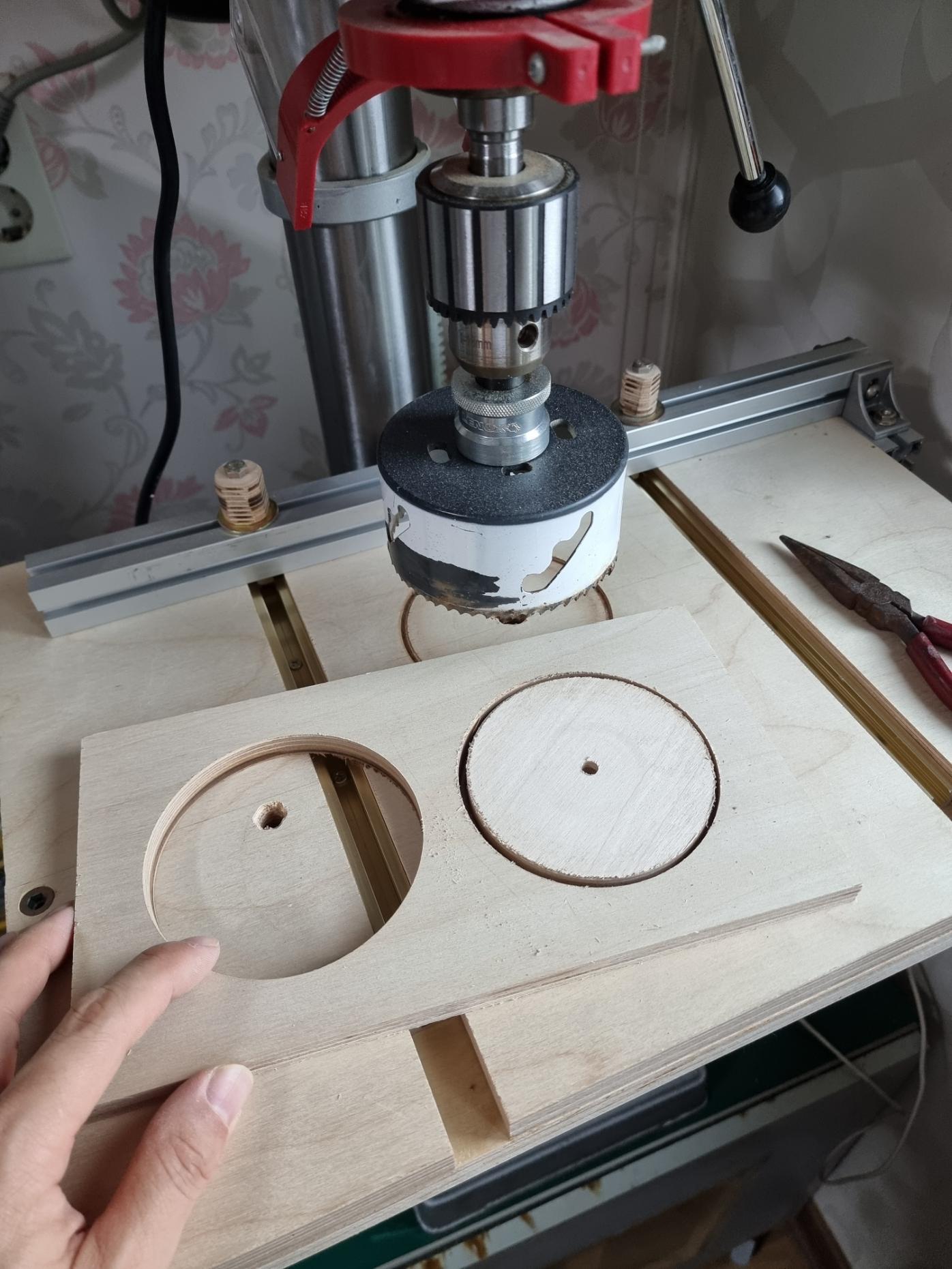 아담한 사이즈의 밥상 크기에 104mm 홀컵으로 구멍을 내주었습니다..