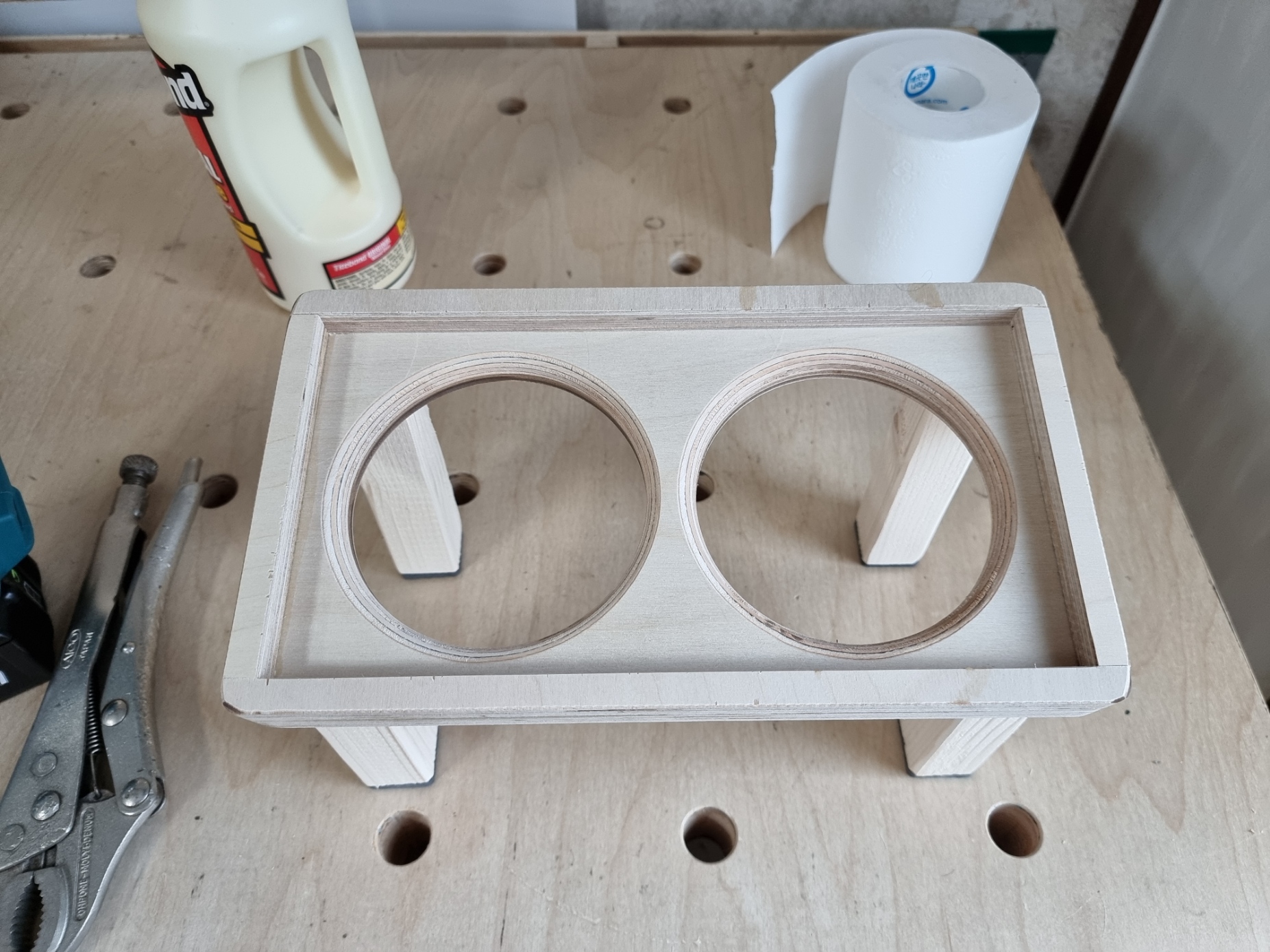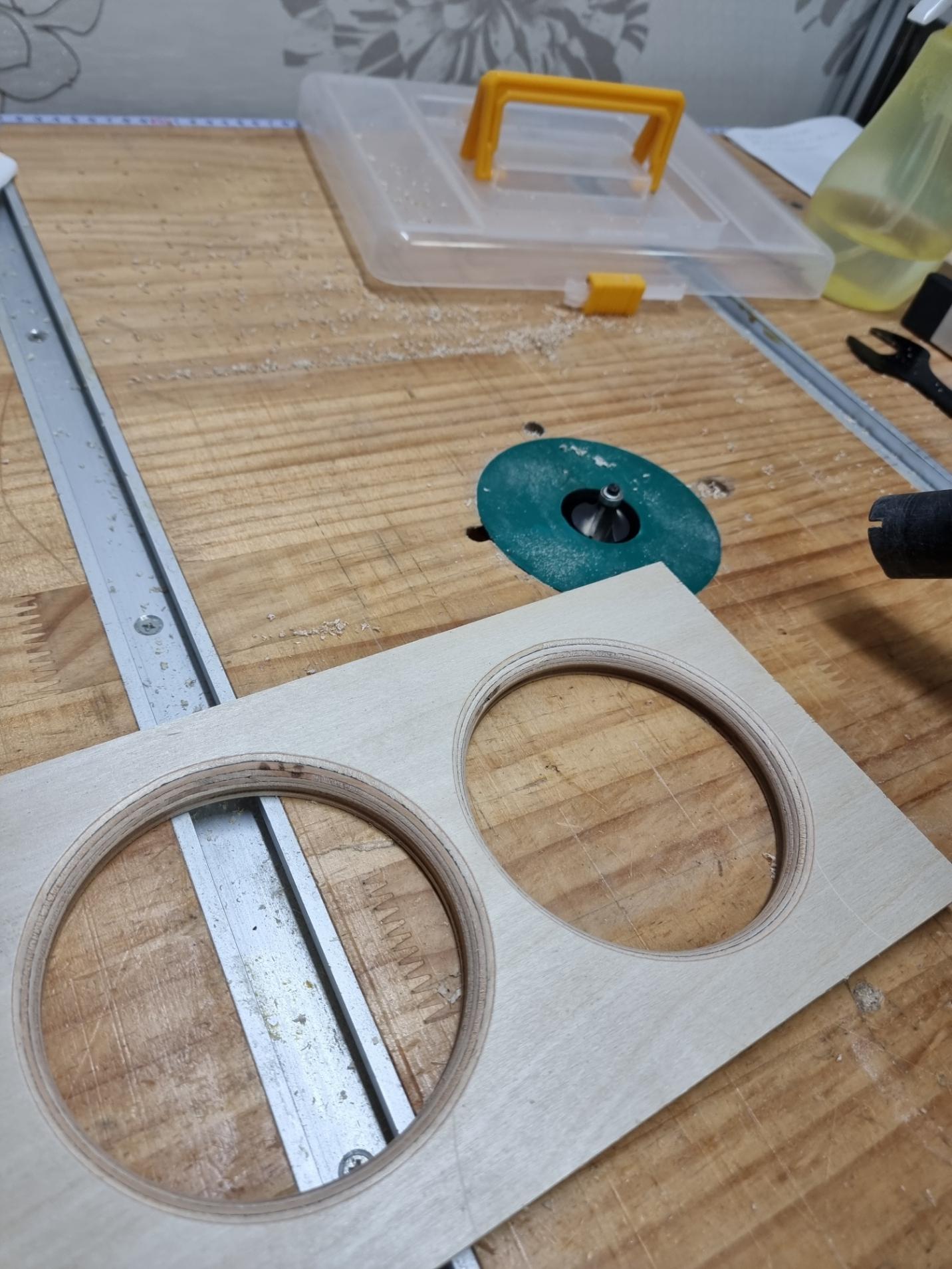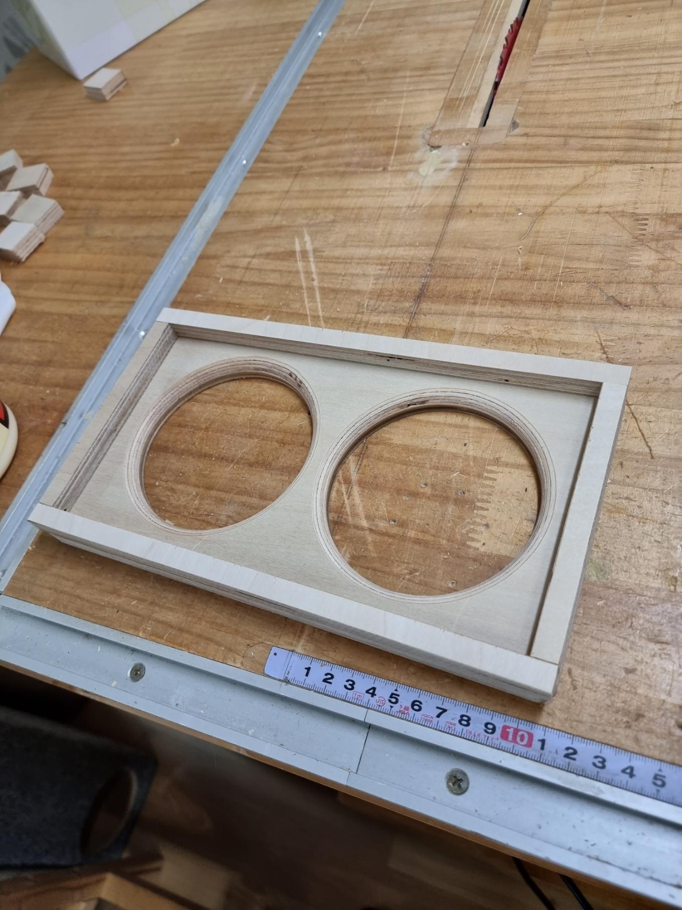 아담한 사이즈의 밥상 크기에 104mm 홀컵으로 구멍을 내주었습니다..
