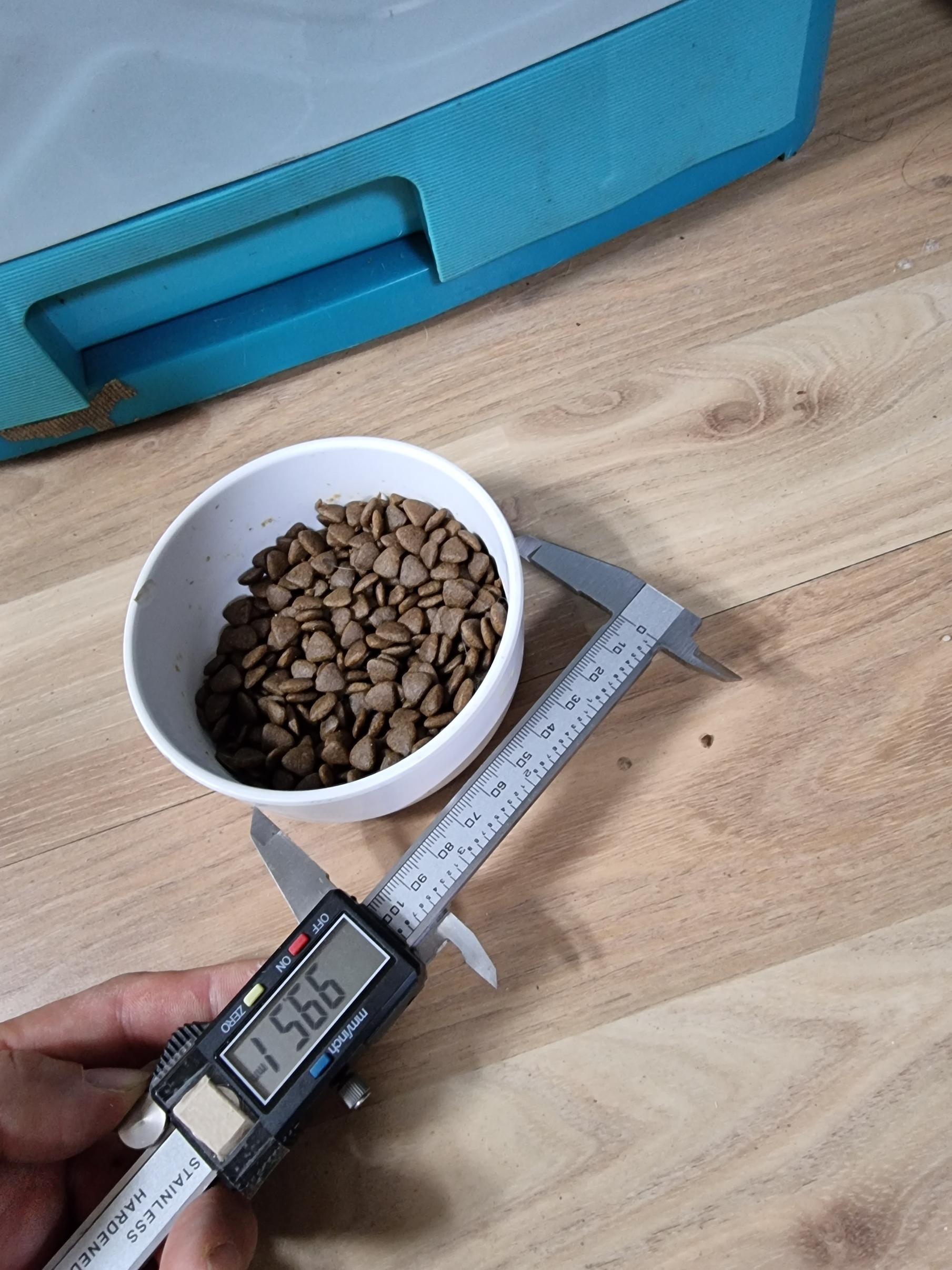 이렇게 붙여 보았습니다. 사료가 턱에 걸려서 바닥으로 떨어지진 않을 것 같네요.